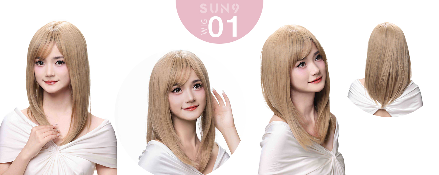 SUN9 ウィッグ ショート ストレート カツラ wig かつら女性 コスプレ ロリータ ウィッグ女装 レディース フルウィッグ 小顔 自然 耐熱 ネット ギフト ボックス付 ブラウンゴールドメッシュ