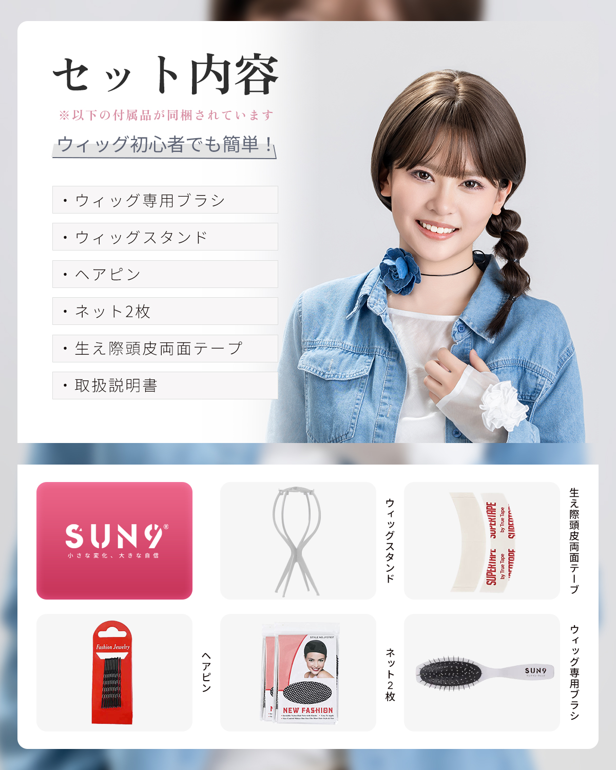 この商品について 【ウィッグへのこだわり】本格的かつ自然な仕上がりを追求。天然繊維で再現した髪の毛は自然な生え際と光沢感があり、まったく違和感のないオシャレで可愛らしいヘアスタイルを実現します。簡単スタイルチェンジで、あなたの魅力を引き出す最高のファッションウィッグ! 【ウィッグ素材】優れたファイバー使用で耐熱性があり、アイロンも使用可能(160℃まで)。小顔効果を保ちながらサラサラで絡みにくい髪質をキープ。自然に馴染み、ウィッグのスタイルが崩れにくく、着用後のスタイリングも簡単。 【シーンを問わない万能ウィッグ】様々な場面で違和感なくご使用いただけるマルチ対応ウィッグです。日常のファッションだけでなく、ハロウィン、クリスマス、お祭り、結婚式、忘年会、二次会、コスプレ、デート、旅行など、幅広いシチュエーションで活躍します。 【自然な生え際と分け目】手間をかけることにより、髪は根元からくっきりとし、柔らかで自然な動きを演出します。程よい毛量でふんわりとしたボリューム感を出しつつも、生え際と分け目がよりナチュラルに。 【軽くて通気性抜群】軽量でありながら、自然な仕上がりを実現し、長時間でも快適に過ごせる高品質ウィッグ。 【セット内容】ウィッグ本体、ウィッグ専用ブラシ、ウィッグスタンド、ヘアピン、ウィッグネット2枚、生え際頭皮両面テープ、取扱説明書。ウィッグ初心者でも届いたその日から簡単に着用できます。