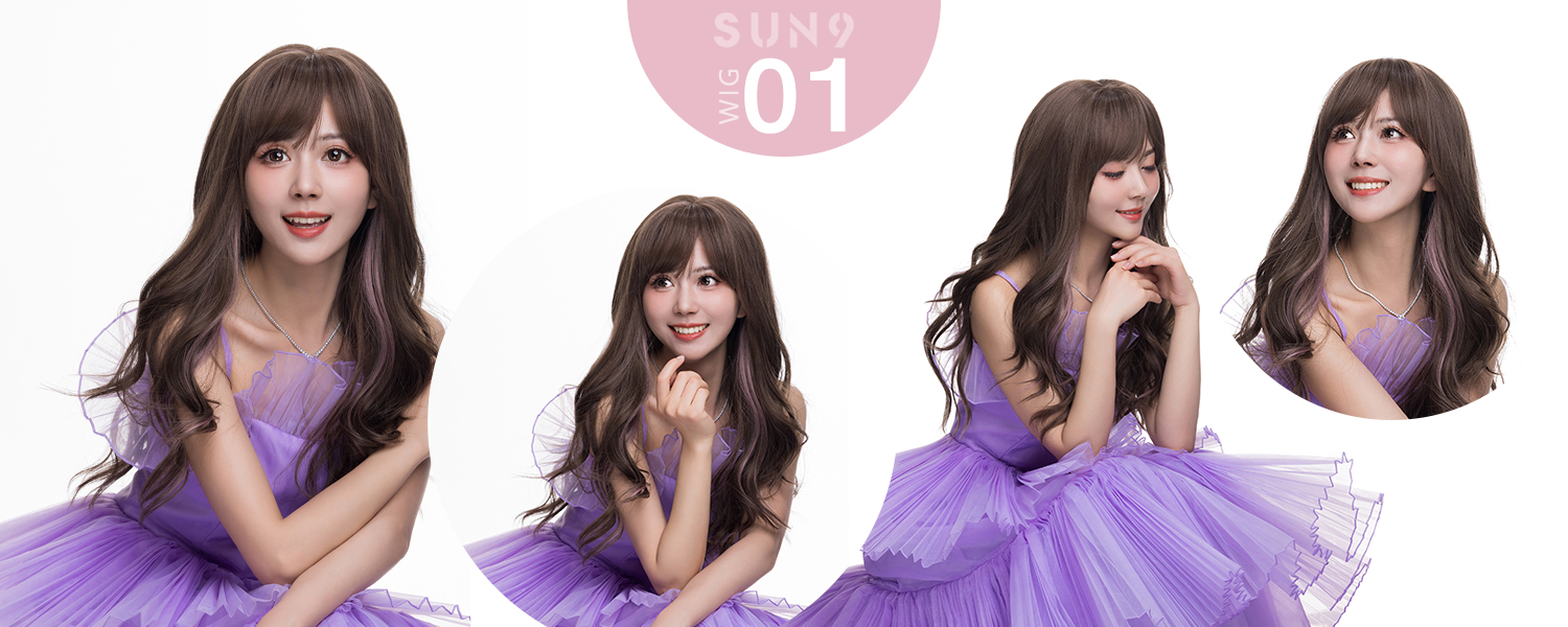 SUN9 ウィッグ ロング カツラ wig かつら女性 コスプレ ロリータ カール 巻き髪 ウィッグ女装 レディース フルウィッグ 小顔 自然 耐熱 ネット ギフト ボックス付 グラデーションパープル