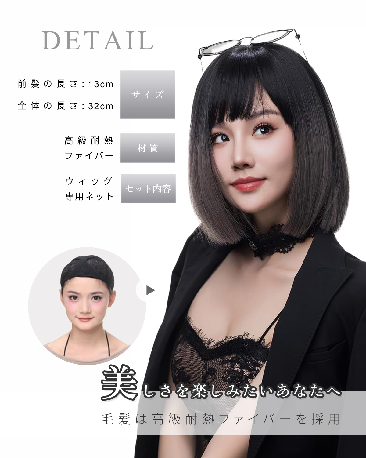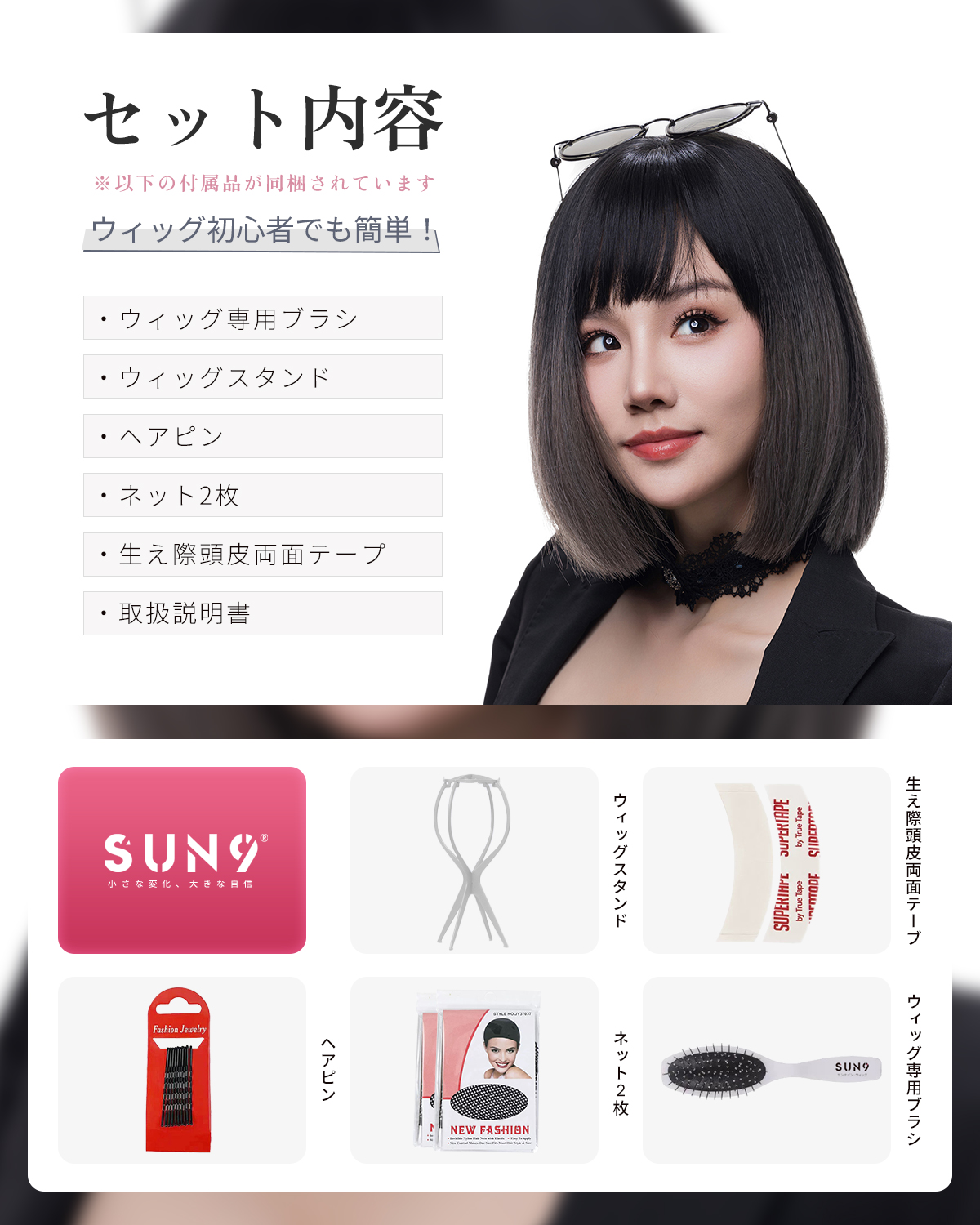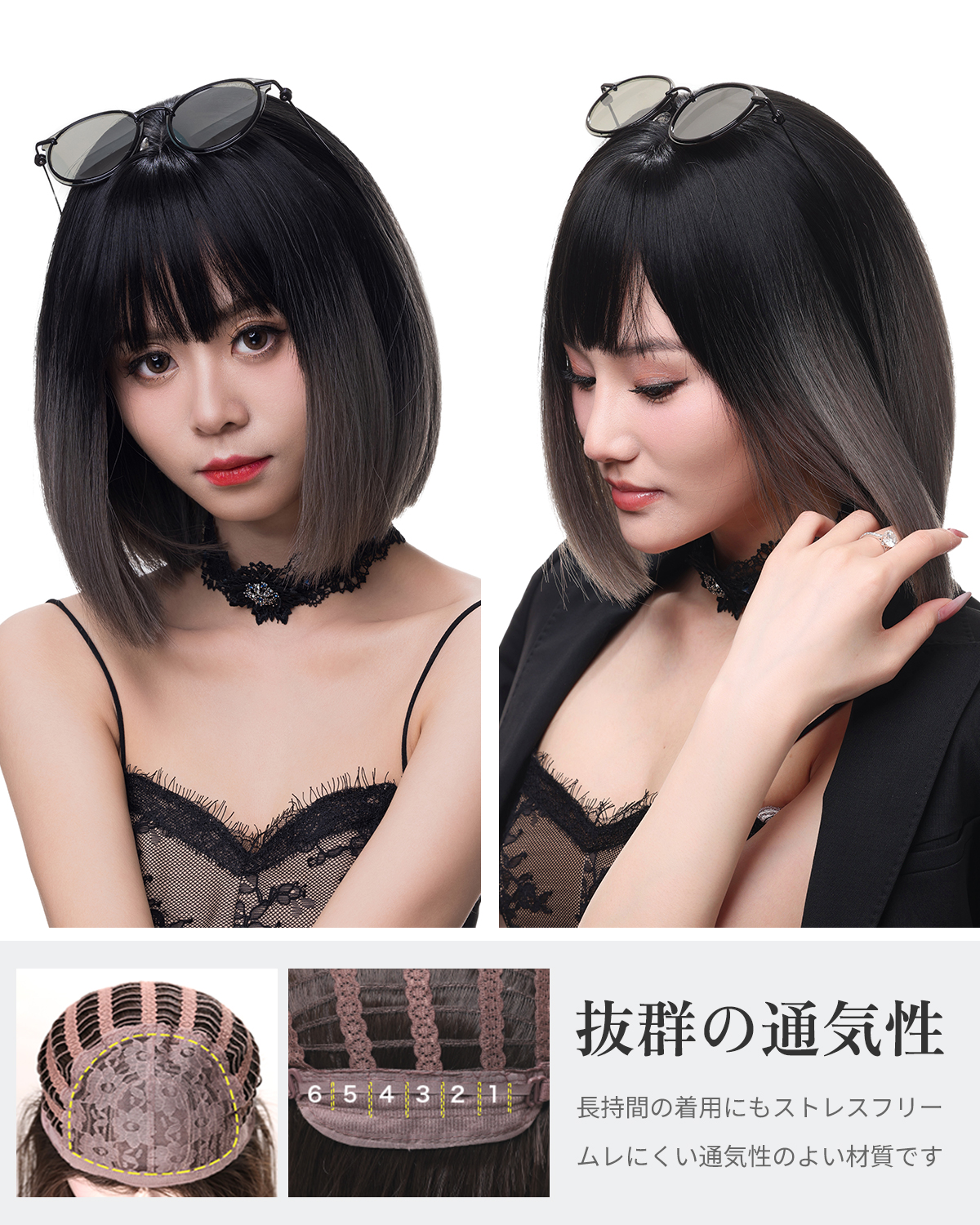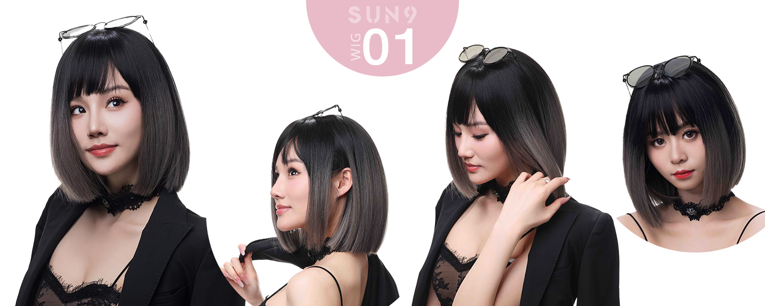 - SUN9 ウィッグ ウイッグ 自然 ストレート フロント ストレート レース コスプレ かつら カツラ 女装 レディース 小顔 耐熱 フルウィッグ フル 女性 wig ミディアムロング ロリータ 可愛い カット レイヤー ギフト ボックス ネット スタンド 専用ブラシ (ブラックグレーのグラデーション)