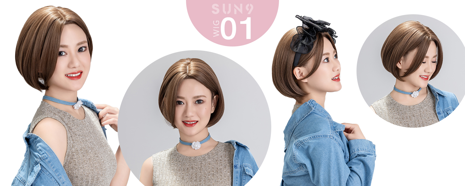 SUN9 ウィッグ ショート ストレート カツラ wig かつら女性 コスプレ ロリータ ウィッグ女装 レディース フルウィッグ 小顔 自然 耐熱 ネット ギフト ボックス付 ナチュラルブラウン
