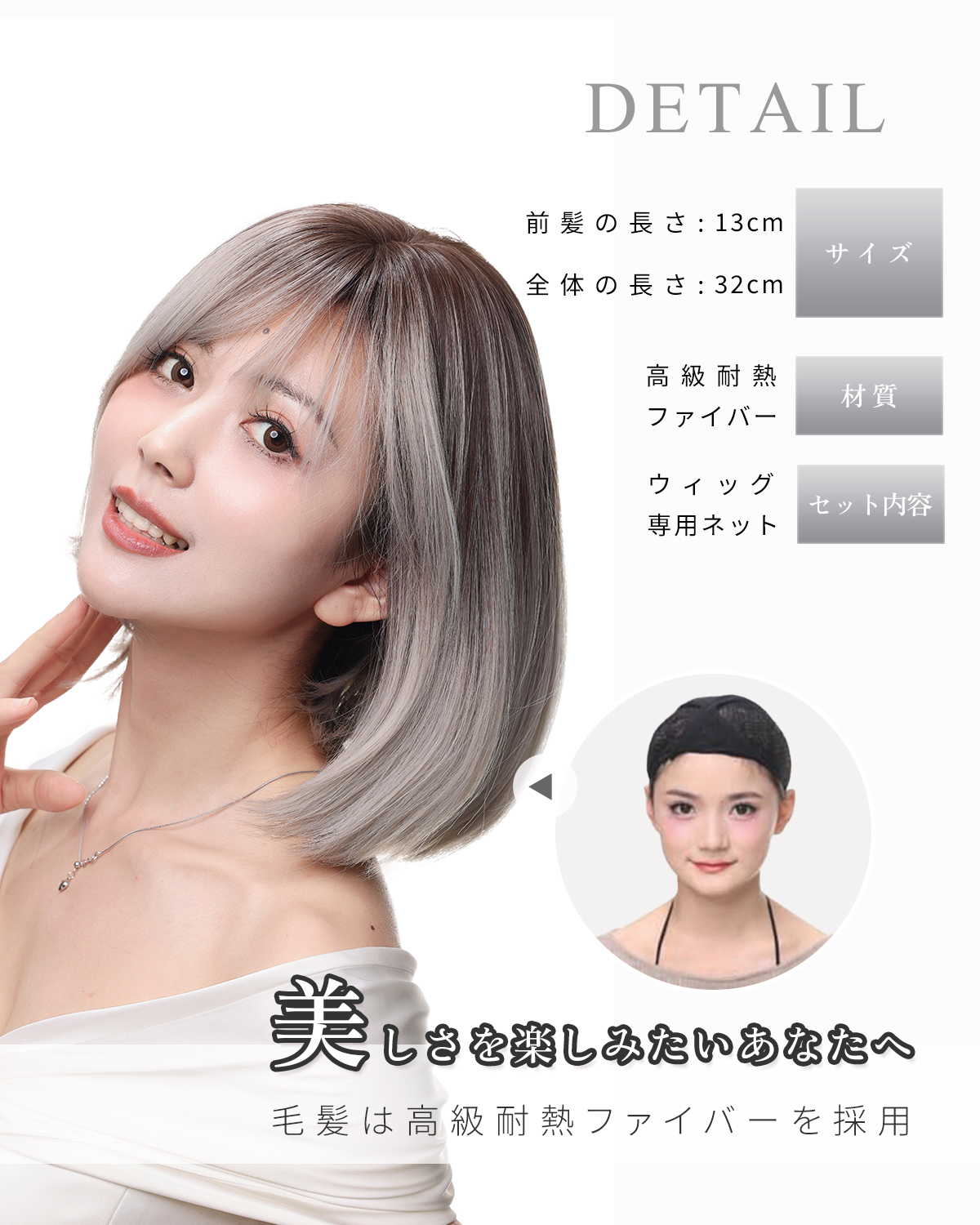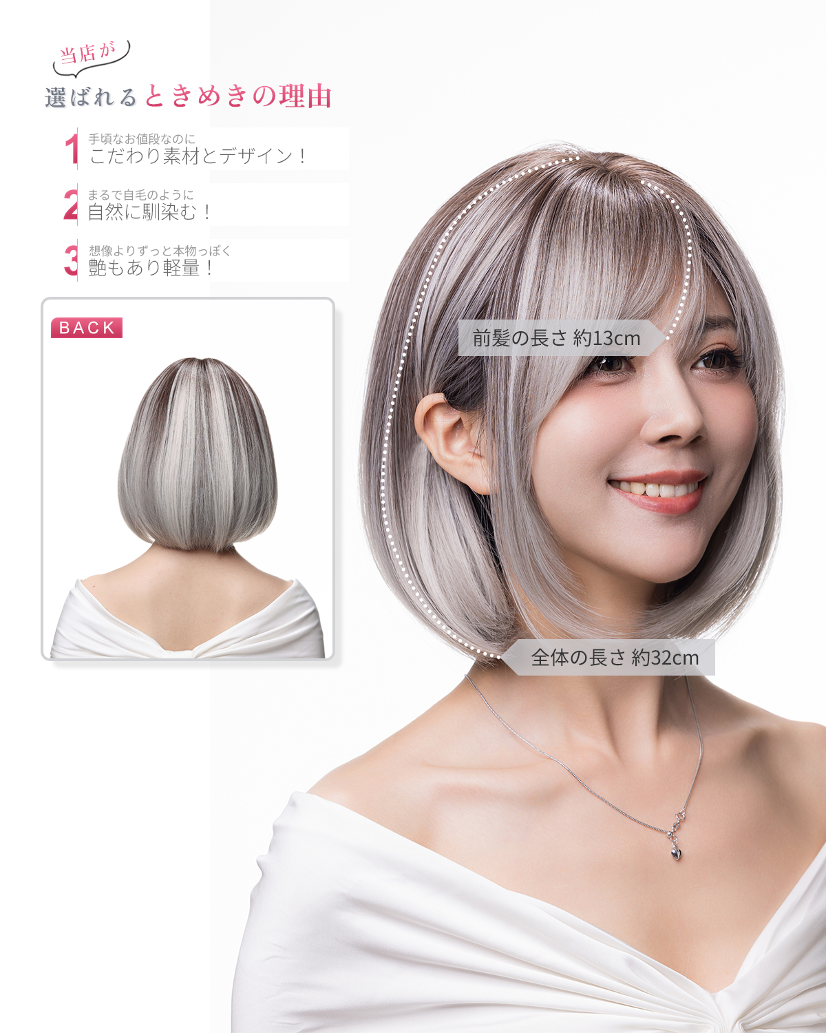 この商品について 【ウィッグへのこだわり】本格的かつ自然な仕上がりを追求。天然繊維で再現した髪の毛は自然な生え際と光沢感があり、まったく違和感のないオシャレで可愛らしいヘアスタイルを実現します。簡単スタイルチェンジで、あなたの魅力を引き出す最高のファッションウィッグ! 【ウィッグ素材】優れたファイバー使用で耐熱性があり、アイロンも使用可能(160℃まで)。小顔効果を保ちながらサラサラで絡みにくい髪質をキープ。自然に馴染み、ウィッグのスタイルが崩れにくく、着用後のスタイリングも簡単。 【シーンを問わない万能ウィッグ】様々な場面で違和感なくご使用いただけるマルチ対応ウィッグです。日常のファッションだけでなく、ハロウィン、クリスマス、お祭り、結婚式、忘年会、二次会、コスプレ、デート、旅行など、幅広いシチュエーションで活躍します。 【自然な生え際と分け目】手間をかけることにより、髪は根元からくっきりとし、柔らかで自然な動きを演出します。程よい毛量でふんわりとしたボリューム感を出しつつも、生え際と分け目がよりナチュラルに。 【軽くて通気性抜群】軽量でありながら、自然な仕上がりを実現し、長時間でも快適に過ごせる高品質ウィッグ。 【セット内容】ウィッグ本体、ウィッグ専用ブラシ、ウィッグスタンド、ヘアピン、ウィッグネット2枚、生え際頭皮両面テープ、取扱説明書。ウィッグ初心者でも届いたその日から簡単に着用できます。