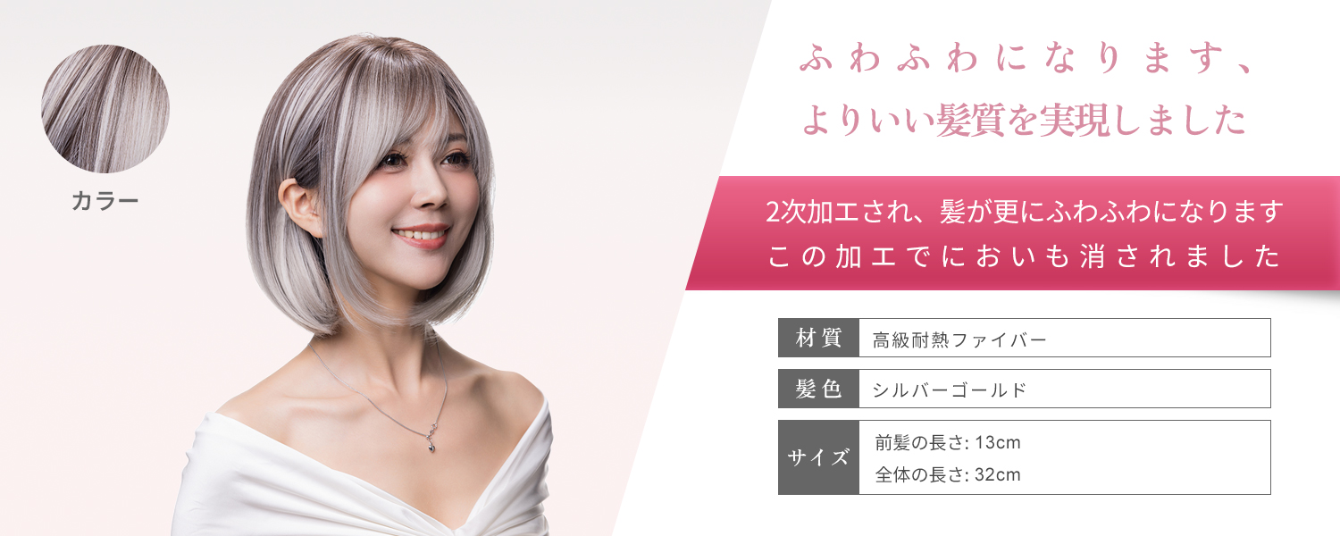 SUN9 ウィッグ ショート ストレート カツラ wig かつら女性 コスプレ ロリータ ウィッグ女装 レディース フルウィッグ 小顔 自然 耐熱 ネット ギフト ボックス付 シルバーゴールド