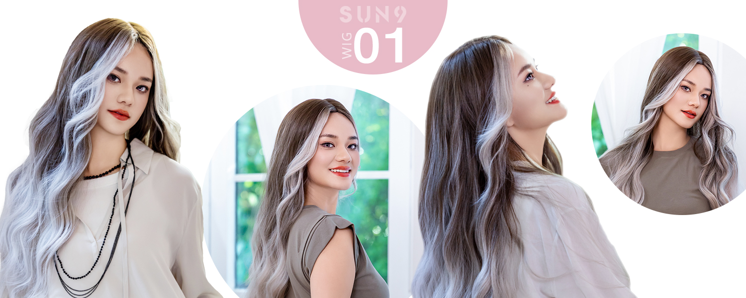 SUN9 ウィッグ ロング カツラ wig かつら女性 コスプレ ロリータ カール 巻き髪 ウィッグ女装 レディース フルウィッグ 小顔 自然 耐熱 ネット ギフト ボックス付 フレンチグレーピック染め
